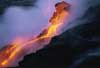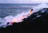 In January of 1999 a friend and I hiked three miles over a fresh lava field to watch the sunset where lava flows into the ocean. We then hiked back by moonlight and flashlight. This walk is rigorous and hot and has real danger if you don't know what you're doing. Be sure you're prepared and talk to the rangers before you go!